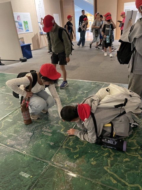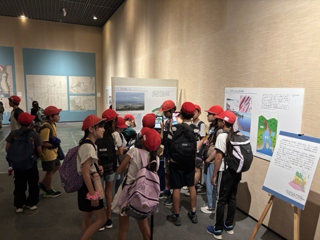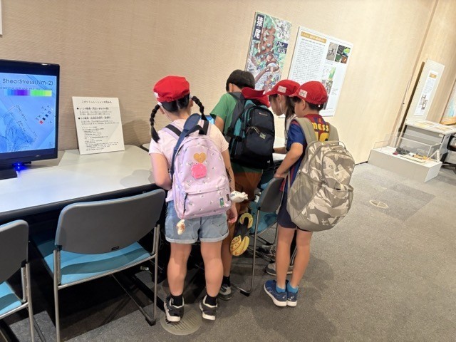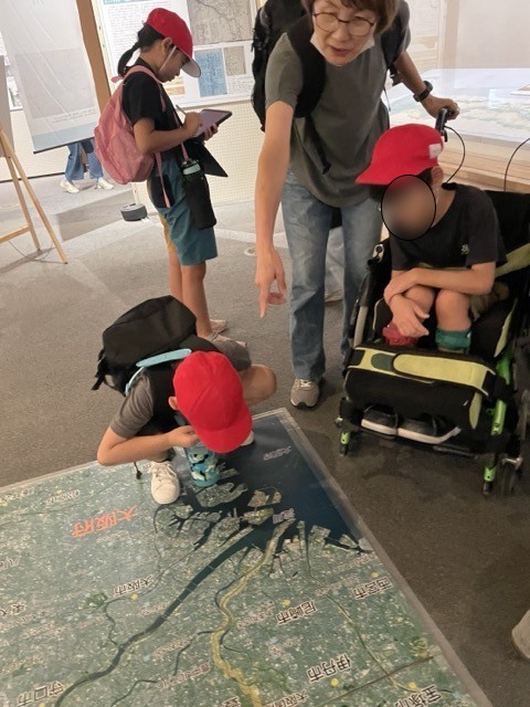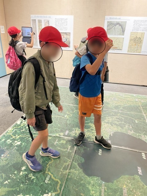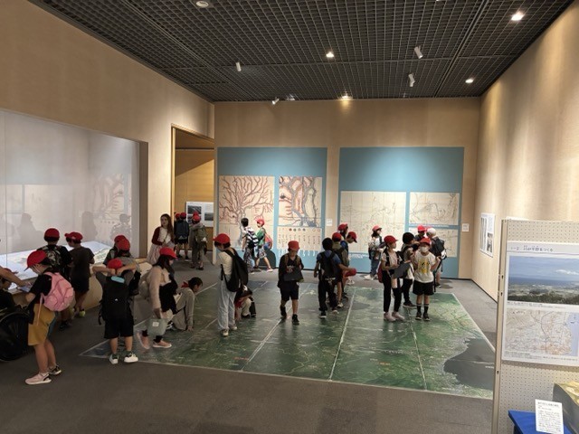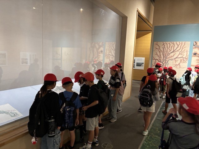 現在開催されている企画展示「川を描く、川をつくる」の見学です。熱心に写真を撮る子、展示物に顔を近づけて観察する子の姿が見られました。