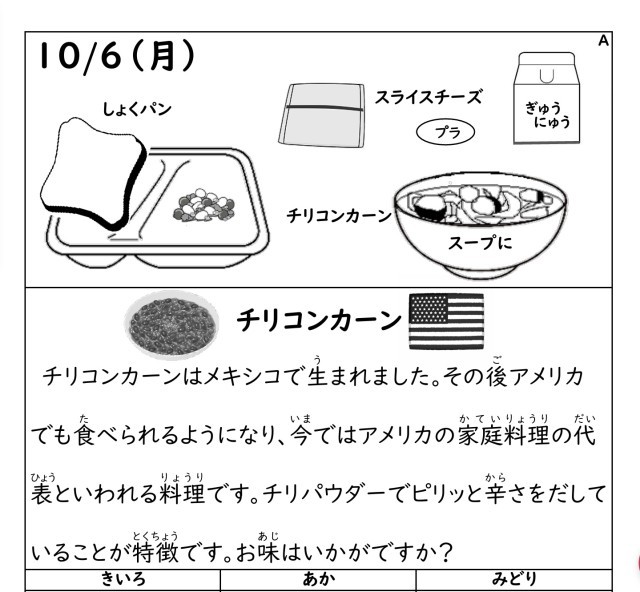 今日の給食/10月6日の献立