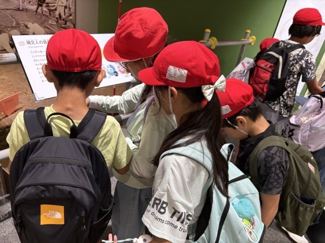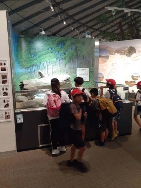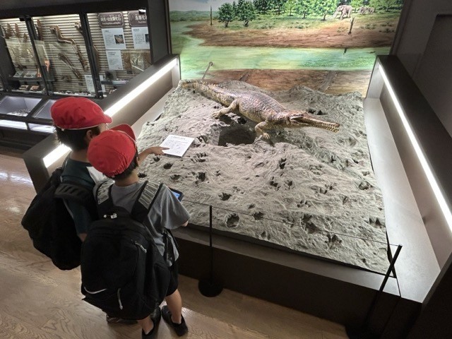 午後の常設展示室での活動では、子どもたちは水族展示や化石、歴史資料など、多岐にわたる展示に夢中になり、最後まで集中力を切らさず主体的に学習に取り組んでいました。