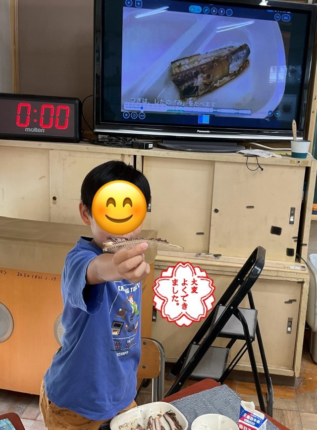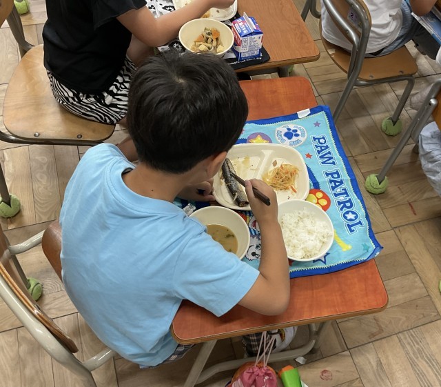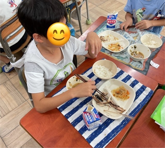 今日は、骨付き秋刀魚が出ました。動画を見て、骨の外し方を確認しました。1年生の様子を見たのですが、綺麗に骨を外している児童が大勢いました。中には、骨ごと食べている児童もいました。3枚目の写真の左下の数字をクリックすると、その他の様子を見ることができます。