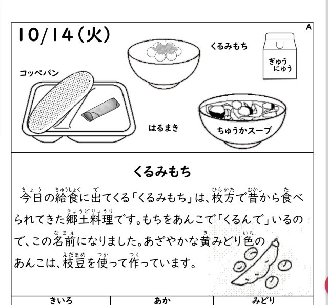 今日の給食(骨付き秋刀魚)/10月14日の献立
