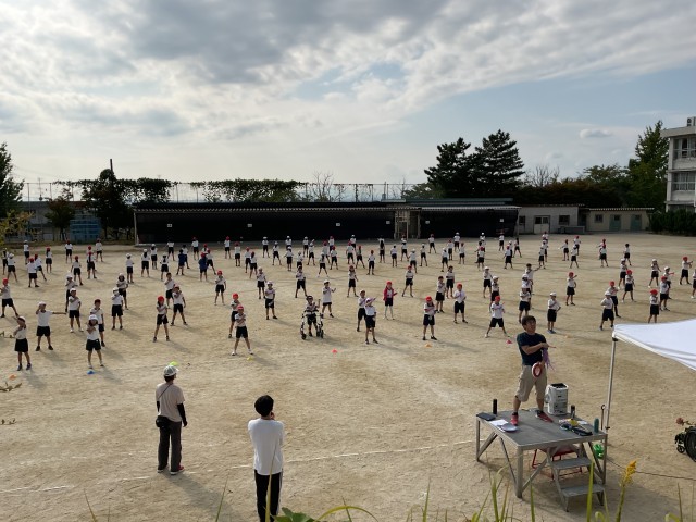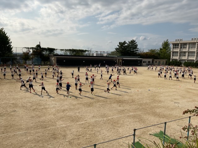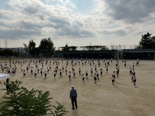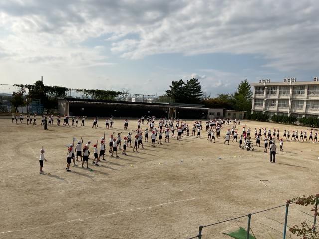 4年生の団体演技の練習風景です。今日も30度近くまで気温が上がり暑い中での練習でしたが、みんな元気に大きな声を出しながら頑張っていました。複雑な隊形移動も少しずつ仕上がっています。