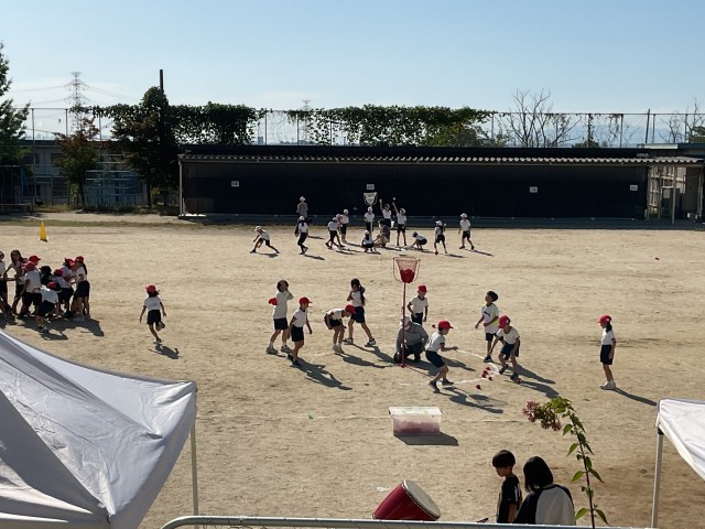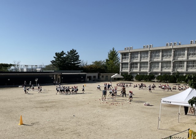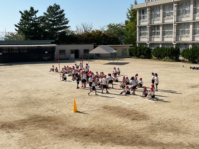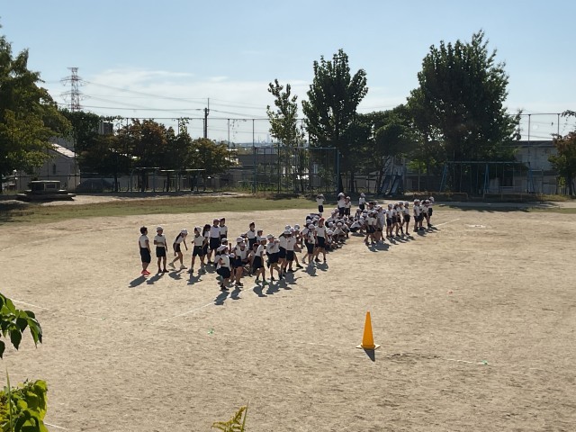 4年生の団体競技の練習風景です。暑い中、本番さながらの真剣勝負でした。