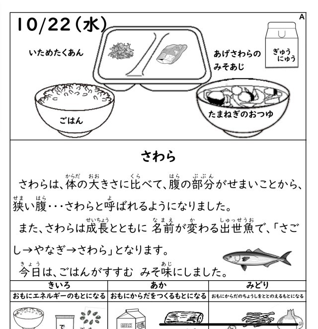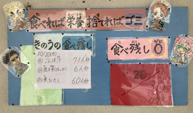 調理場前の掲示物が、1年2組のものに変わっていました。こちらもなかなかの傑作揃いでした。