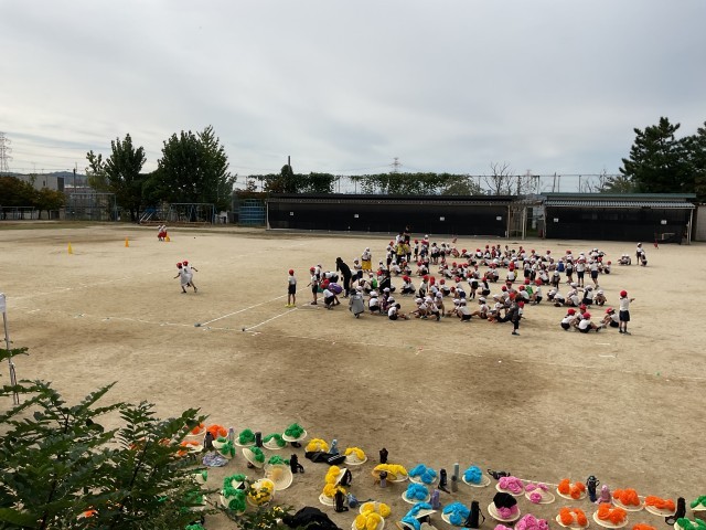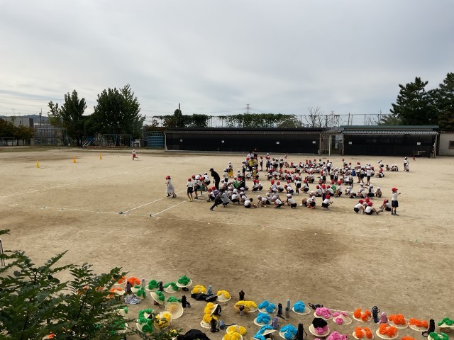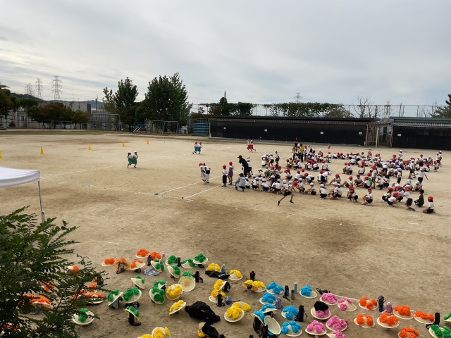 2年生の団体競技の練習風景です。本番さながらの盛り上がり方でした。ついつい焦ってしまいがちですが、落ち着いて準備をする時と、急いで走る時のメリハリの付け方がポイントになりそうです。