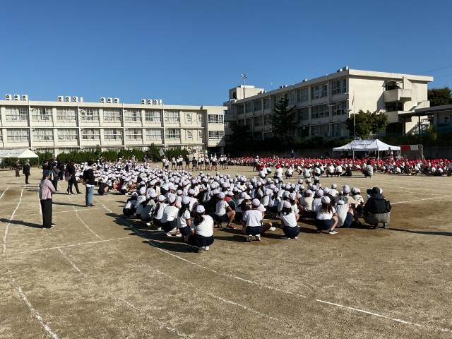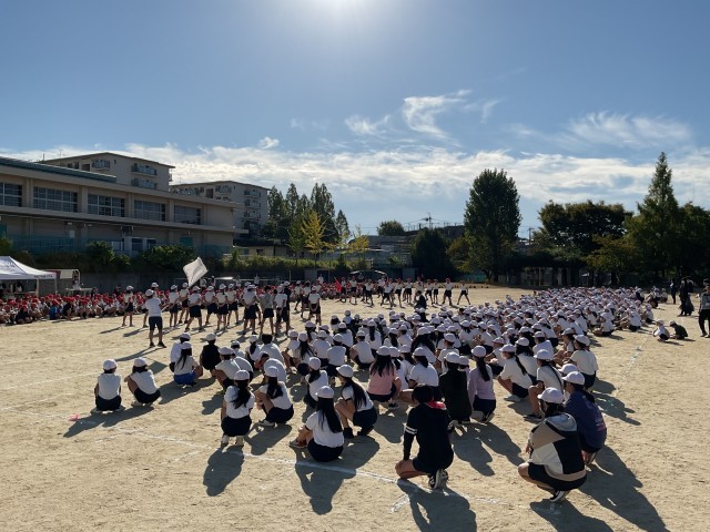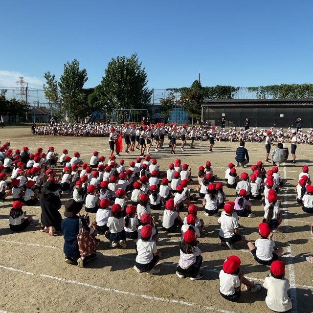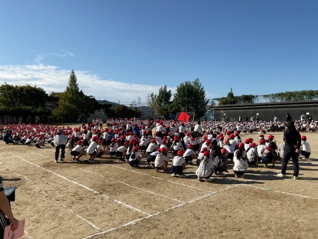 昨日の予定を順延して、抜けるような青空の下、運動会全体練習を行いました。応援合戦と閉会式の練習でしたが、やはり全員が揃っての応援合戦は迫力満点でした。閉会式では仮の得点発表を行いましたが、紅白の結果を聞いた子どもたちは本番かと思うような盛り上がりを見せてくれました。