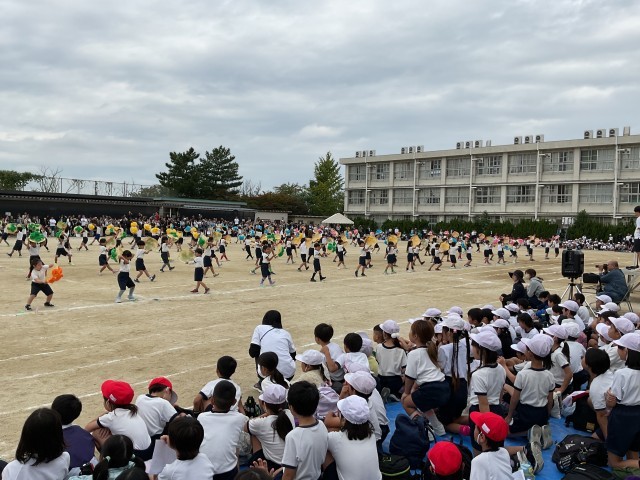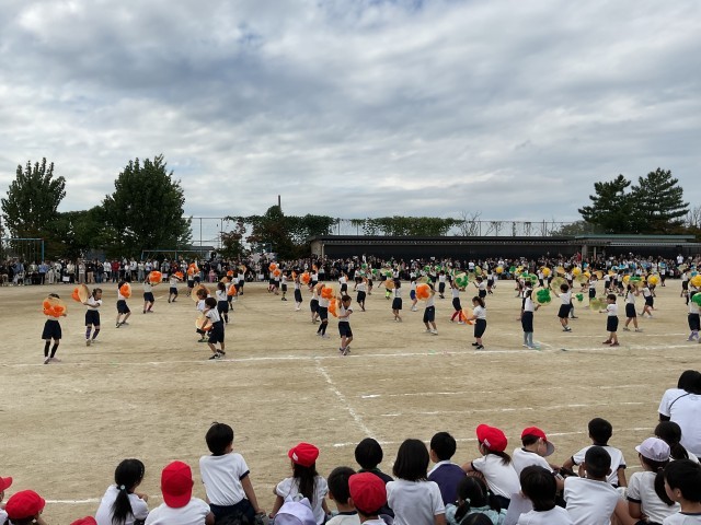 昨年、Bling-Bang-Bang-Bornでノリノリの団体演技を披露してくれた2年生が、今年は花笠音頭に挑戦しました。鈴と花が付いた花笠をキレ良く使いこなし、“ヤッショーマカショ“という大きな掛け声が印象的でした。