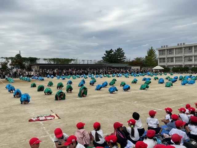 6年生にとって最後の運動会。プログラムの大トリを務めるのは菅東ソーランです。衣装の背中には、自分の名前から取った手書きの漢字一文字が描かれています。迫力満点の躍動感あふれる演技からは、この運動会にかける6年生の熱い思いが感じられました。