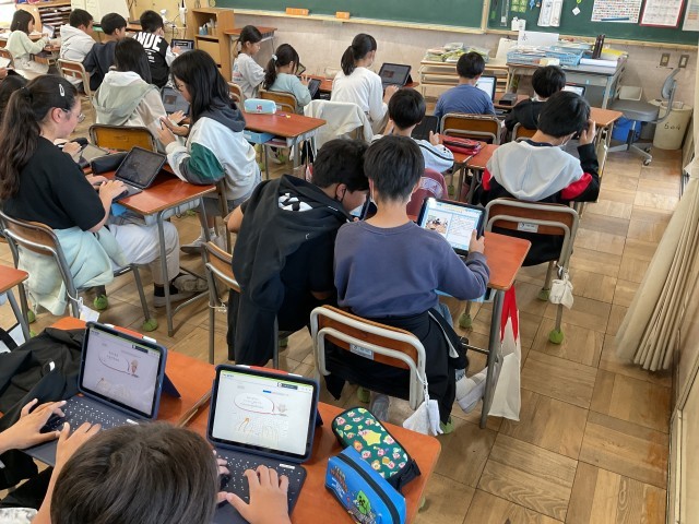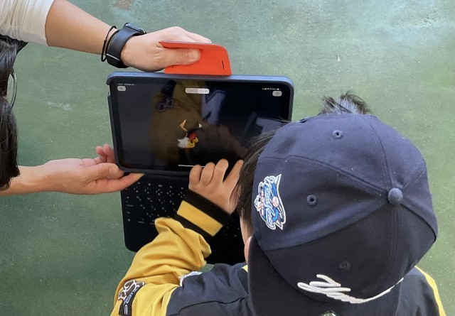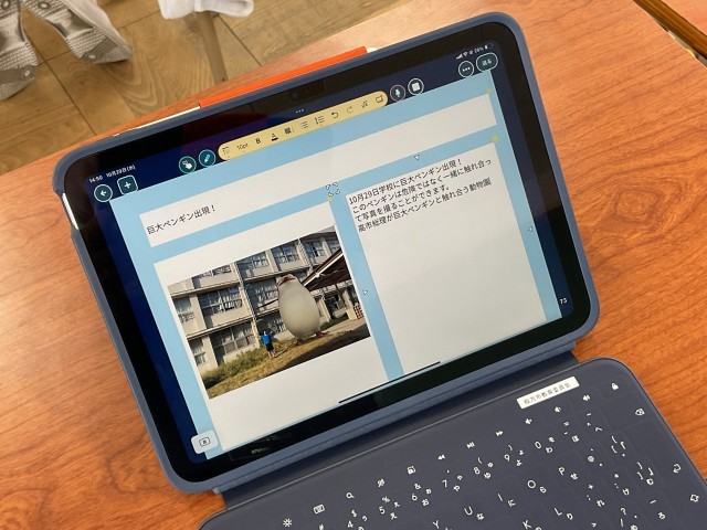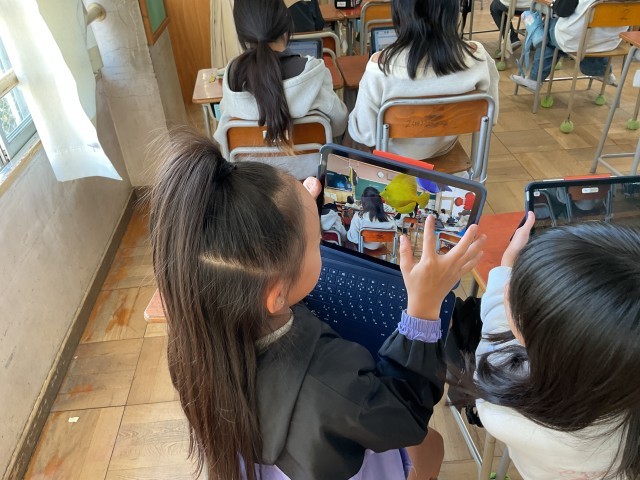 タブレットクラブでは、AR(拡張現実)を使って仮想世界をタブレット上に表示することに挑戦していました。実際には存在しないキャラクターや魚などがタブレット上で動いたり、巨大なペンギンがあたかもそこに存在するかのような写真を作ったりしていました。子どもたちの発想力の豊かさに驚かされました。