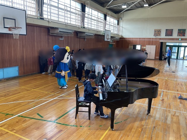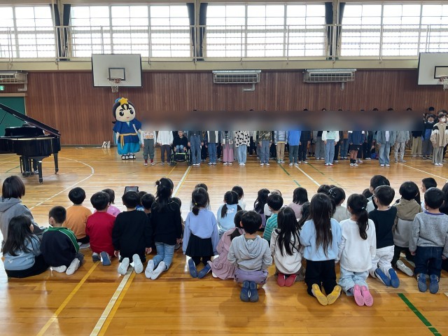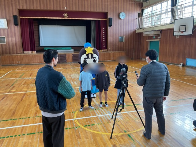 1週間後に控えた音楽会に向けて、4年生が体育館で合同練習を行いました。そして、その様子を1年生が観にきました。音楽会では、枚方市の歌である『この街が好き』を合唱することがきっかけで、今日の練習風景と本番の様子を市の広報の方々が取材に来てくれることになりました。終盤には、サプライズで市のキャラクターであるひこぼしくんに登場いただき、大いに盛り上がりました。全体練習の後、3人の児童がインタビューを受けました。本番の様子も含めて、市から動画がアップされる予定です。