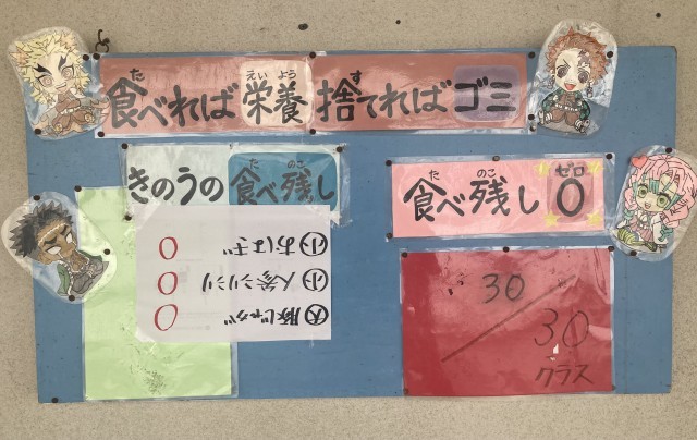 (前回(先週の金曜日)の残菜はゼロでしたが、残菜の紙が上下逆さまになっています。ご容赦ください。)