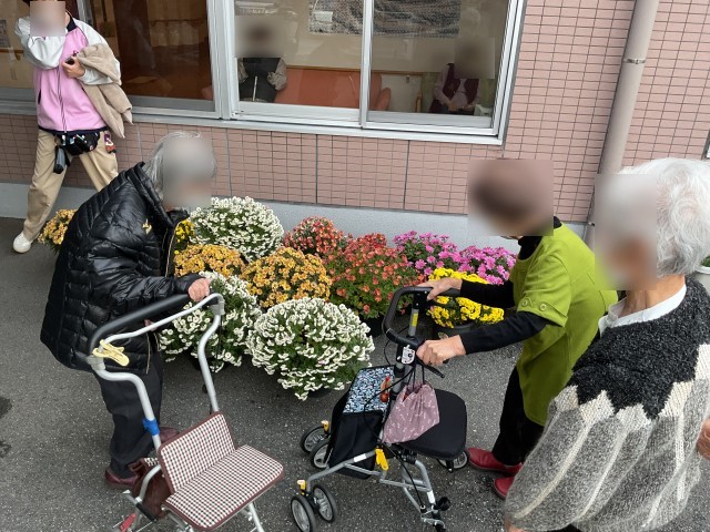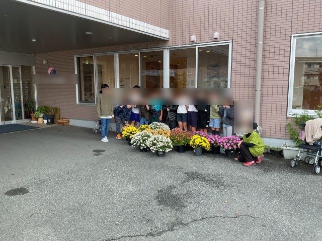 4年生児童が、自分たちで育てた小菊18鉢を学校近隣の高齢者施設に届けました。以前は交流があったようですが、コロナ禍もありそのような機会は途絶えていました。今年は、児童が育てた菊を施設に飾らせて欲しいと申し出たところ、快諾いただきました。そして今日。子どもたちが水を含んで重くなった鉢を、1鉢ずつ丁寧に抱えながら届けました。その場にいらっしゃった利用者の方々からは、多くの喜びの声が聞かれました。利用者の皆さんにとって、ほんの一瞬でも心の癒しになればいいなと思っています。子どもたちにとっては、自分たちが育てた菊がこのような形で飾っていただけること、そして、多くの方々から感謝とお礼の気持ちを伝えていただいたこと、それが大きな達成感と自信に繋がったことでしょう。
