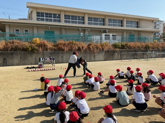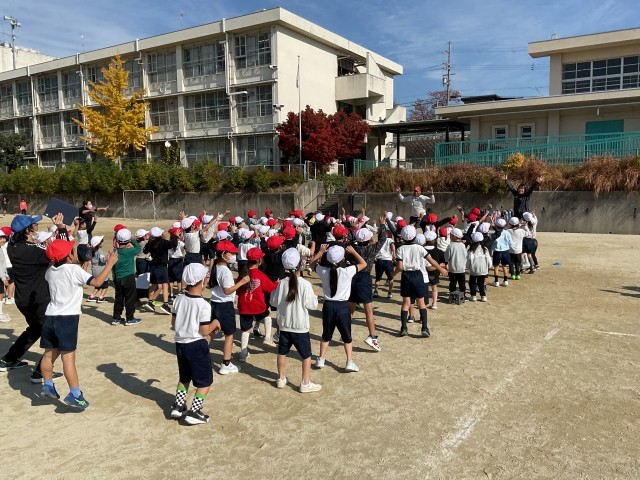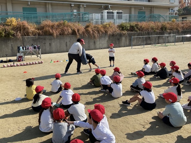 今日の出前授業では、遊びやゲームを通じて自己表現力を高めること、仲間と連携すること、他人に感謝することの大切さを伝えてくれました。子どもに対する接し方がとてもお上手で、子どもたちは飽きることなく指示に従って動き回っていました。『ニラニラ』という罰ゲーム(子どもたちは喜んでやっていましたが・・・)は、しばらく1年生の間で流行るかもしれません。