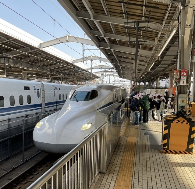順調に新大阪駅に着き、先ほど新幹線で広島に向かって出発しました。子どもたちはワクワクする気持ちを抑えつつ、一般の方々に迷惑を掛けることなく、乗車しました。社内では、早速、多くの子どもたちがカードゲームを始めています。