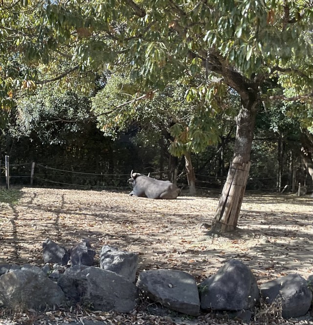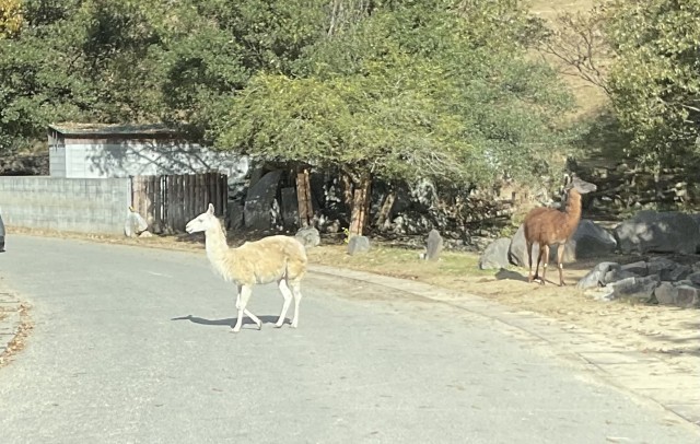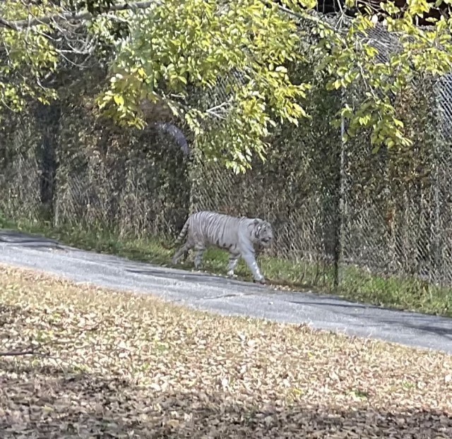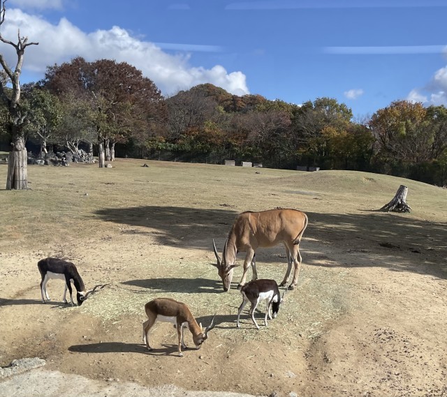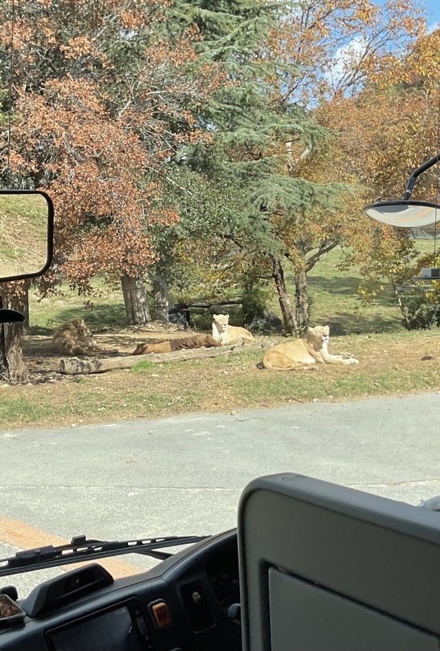 サファリパークをバスに乗って回りました。動いているホワイトタイガーが見られるのは珍しいそうです。大型の草食動物って本当に大きいね、と驚いていました。