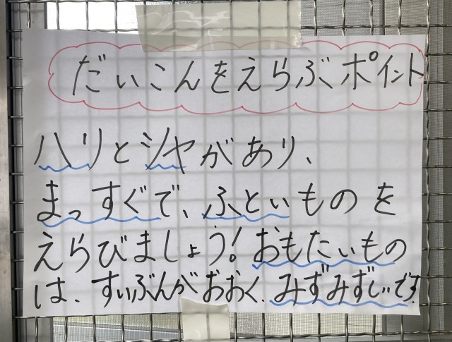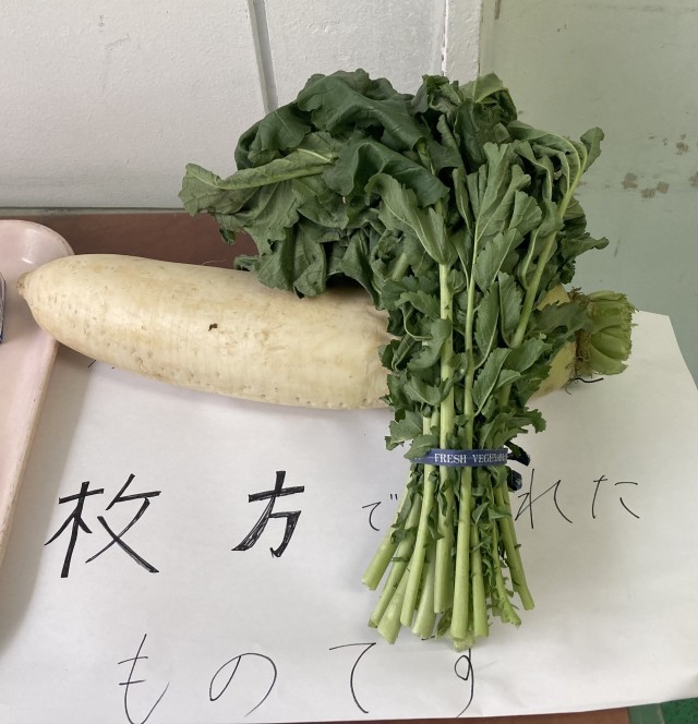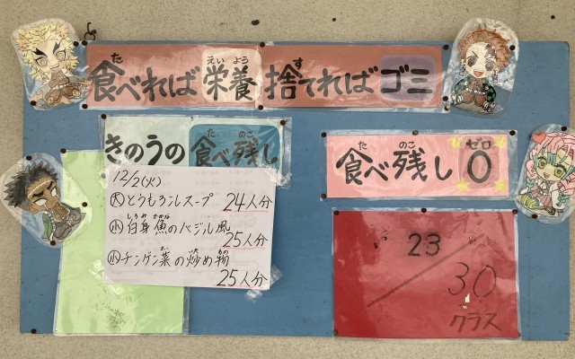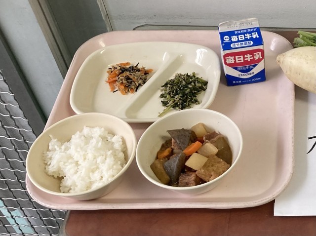 今日の給食/明日の献立 公開日 2025/12/03 更新日 2025/12/03 おいしい給食 今日も美味しくいただきました。ご馳走様でした。今日はおはなし給食の日でした。大根料理にちなんで、大根に関する話が紹介されました。それに合わせて、図書室前には大根を題材にしたその他の絵本の紹介がされています。ちなみに、今日の大根は枚方市で採れたものです。葉っぱも残すところなく、炒り煮にしました。 +3 いいね(0)