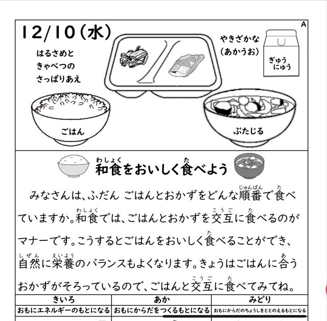 今日の給食/明日の献立