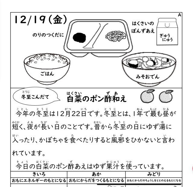 今日の給食/明日の献立