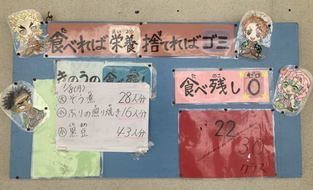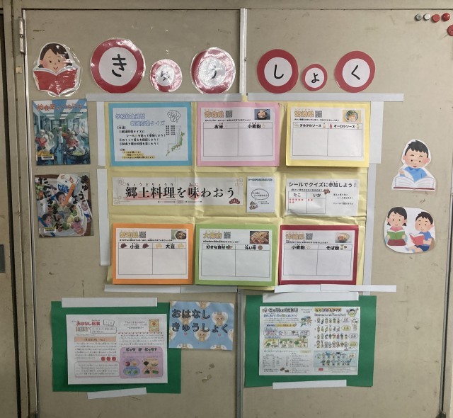 図書室前の給食に関する掲示物も、新年度仕様に変わっています。