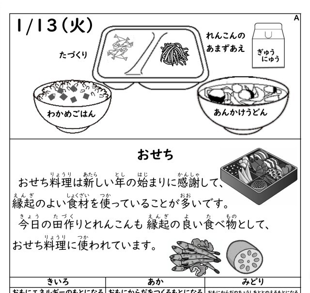今日の給食/1月13日の献立