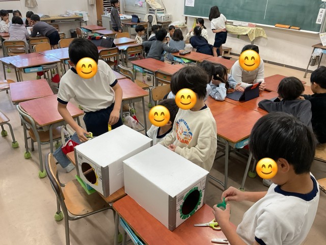 子どもたちみんなが楽しみにしている児童会祭りを来週に控え、2年生が出し物の準備をしていました。このクラスでは、大きく二つの企画を考えているようでした。それぞれ役割を決めて、楽しそうに作業に取り組んでいました。