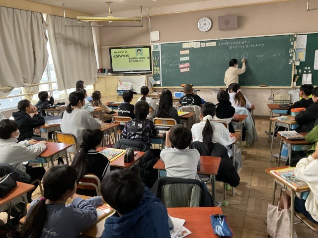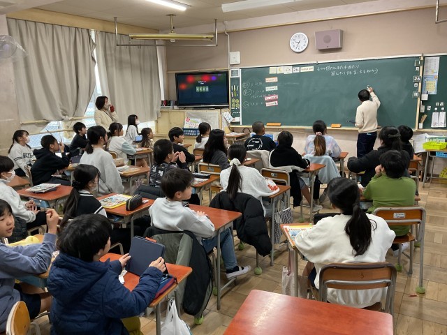 今日から4週間、NET(外国人英語講師)のDom先生が本校で英語指導をしてくれます。この間、普段、外国語の授業がない低学年も含めて、全ての学級に入っていただく予定です。初回の授業は5年生でした。Dom先生の自己紹介から始まり、ものの数え方を学びました。昨年度に引き続き、京都外大の留学生やNETといった外国人と触れ合うことで、子どもたちの海外に対する知識や関心が高まることを願っています。