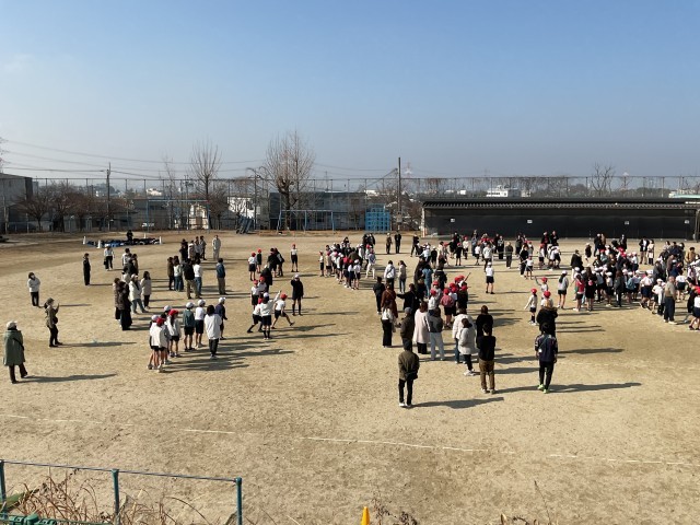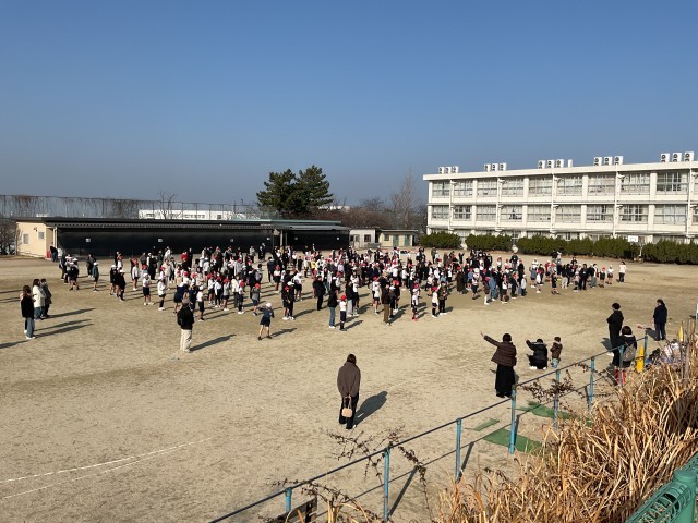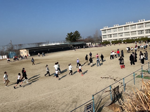 参観日(5年生) 公開日 2026/02/13 更新日 2026/02/13 5年生 5年生が参観日に5分間走と大縄跳びに挑戦しました。青空の下、運動場には大勢の保護者の皆さんに来校いただき、子どもたちはいつもよりテンションが高かったように感じました。最初の5分間走では、予想を上回る多くの保護者の皆さんにも参加していただきました。大縄跳びでは、運動場中に広がって学年全体が取り組み、その様子は壮観でした。 +2 いいね(0)