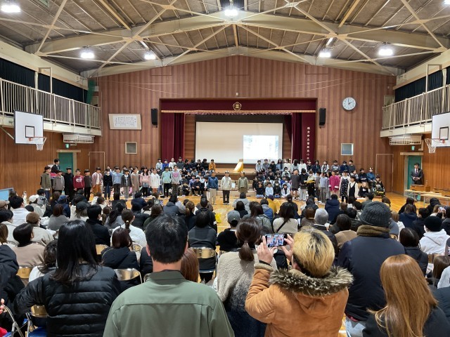 4年生が参観日に、オペレッタ『アナトール、工場へ行く』を発表しました。この作品は、教科書にも載っているネズミのアナトールが活躍する話です。子どもたちは、面白おかしく、途中には合奏も織り交ぜながら楽しそうに演じていました。