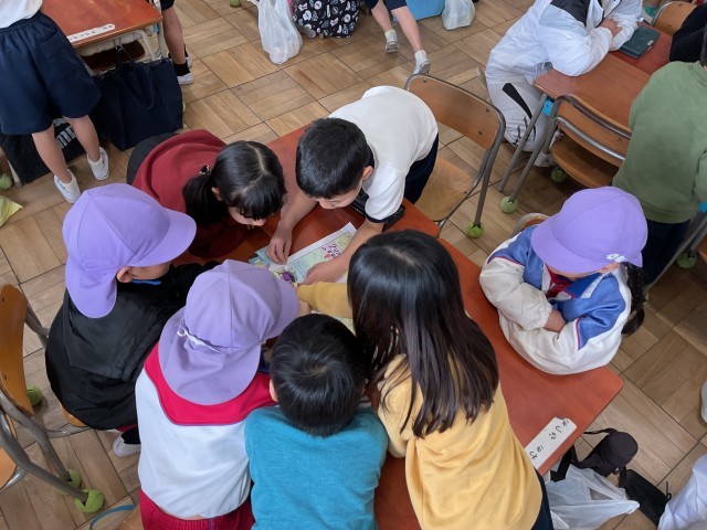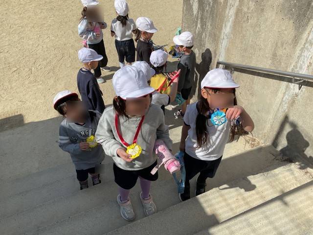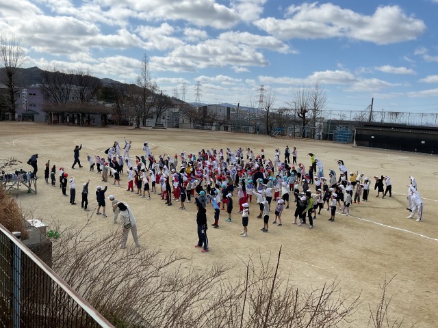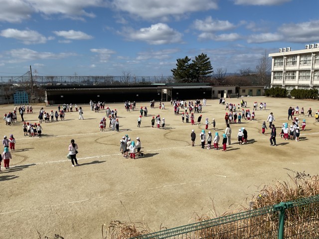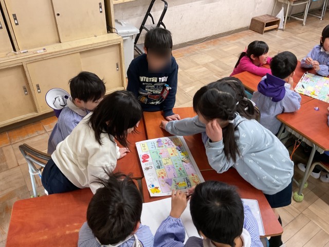 今日は、長尾幼稚園と長尾保育園の年長組の園児が来校し、1年生との交流を行いました。まず、教室で双六などをしました。双六のマスごとの指示内容は、児童が考えました。その後、運動場で一緒に『どんじゃんけん』をしました。1年生児童にとっては、お兄さん、お姉さんとしての自覚を促し、2年生に繋げるいい機会になりました。園児にとっては、4月からの小学校生活を迎えるにあたり、少しでも不安を和らげる機会になったのではないかと思います。お別れの前には、園児の手作りメダルをプレゼントしてもらいました。