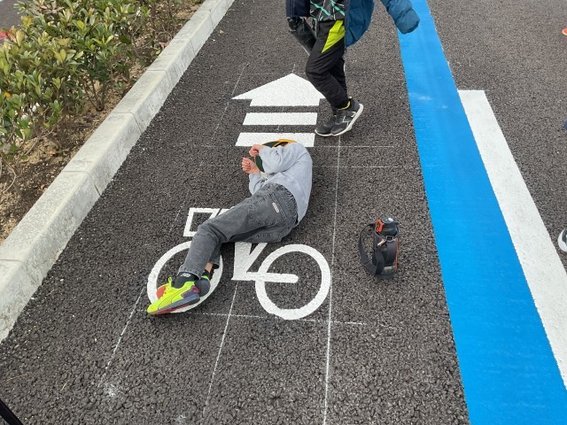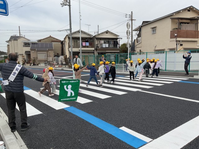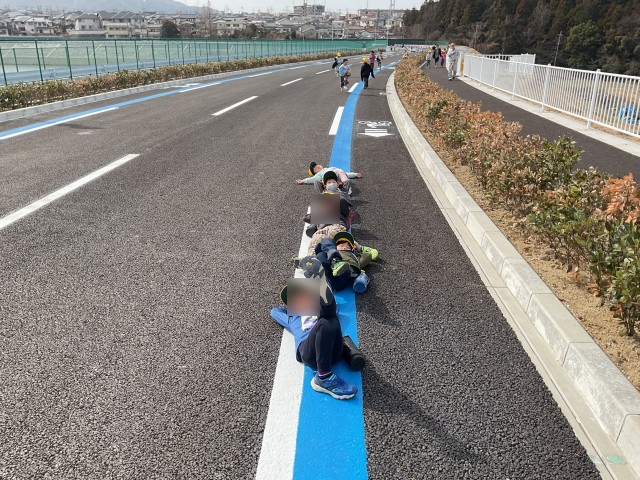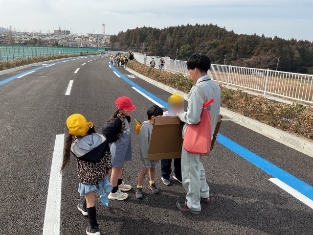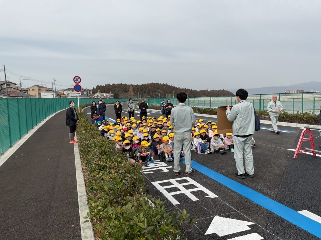 長尾大池の周りに、新しい道(長尾杉線)が明日の午後3時から開通します。それに先立ち、15日に一般向けに開通式を行ったところですが、今日は、本校の1年生向けに特別に開放していただきました。まっさらの道路に集まった児童は、市の担当者から説明を受けた後、横断歩道の渡り方を実践しました。その後、誰もいない道路を端まで歩き(走り?)ました。今日だけということで、道路に寝そべったり座ったりする児童も大勢いました。このような機会はなかなかないのですが、市役所の担当者にお願いして実現することができました。子どもたちにとっては、おそらく二度とない思い出になっただけでなく、交通安全について考えるいい機会になりました。
