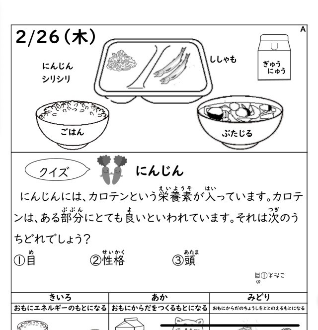 今日の給食/明日の献立