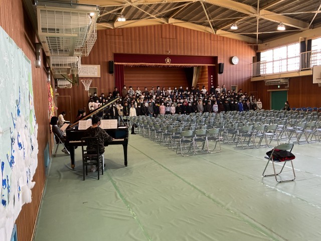 卒業式を二日後に控え、今日は本番を想定した予行練習が行われました。これまでの練習とは一味違ったピリッとした緊張感の中で、立派な予行練習になりました。途中、5年生も見学に来てくれました。今日も素晴らしかったですが、本番はもっと良くなると思います。本番当日が楽しみです。