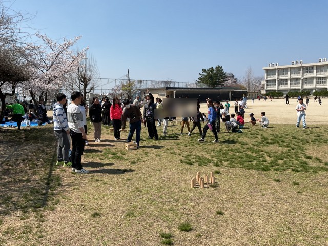 モルック 公開日 2026/04/03 更新日 2026/04/03 学校の様子 お花見ランチの後は、モルックをして楽しみました。その頃には、昼食を終えた児童会の児童が大勢、集まってきました。初めてモルックをする職員も大勢いましたが、初心者も経験者も関係なく、大いに盛り上がりました。 +1 いいね(0)