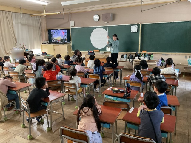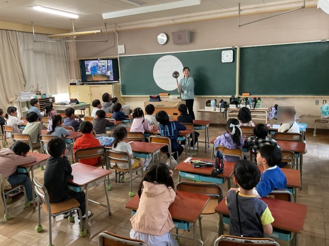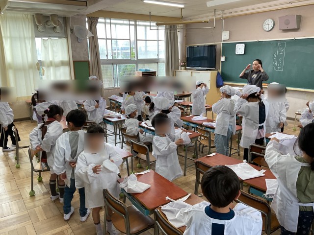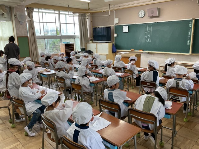 給食開始に向けて(1年生) 公開日 2026/04/13 更新日 2026/04/13 1年生 1年生の給食は、15日から始まります。その前に、今日は栄養士さんによる給食の紹介を受けたり、給食係の給食衣の着方を学んだりしました。給食の動画を見ながら、栄養士さんが調理に使う大きなシャベルや柄杓の実物を見せると、子どもたちはその大きさに驚いていました。給食衣を着る時には、お互いが助け合いながら自分たちで頑張っていました。 +1 いいね(0)