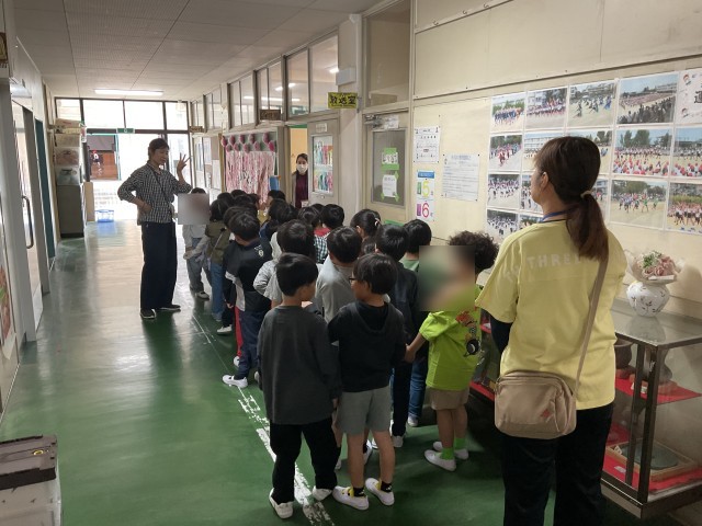 始業式から約10日が経ちました。1年生は、15日から給食が始まり、昨日は運動場の遊具の説明を受けました。少しずつ、小学校での初体験が増えてきているところですが、今日は校内探検を行いました。管理棟の1階では、職員室・校長室・放送室・保健室などを担任の説明を聞きながら見てまわりました。職員室の前では、ノックをして学年・組・名前を大きな声で言う入室時の練習をしていました。