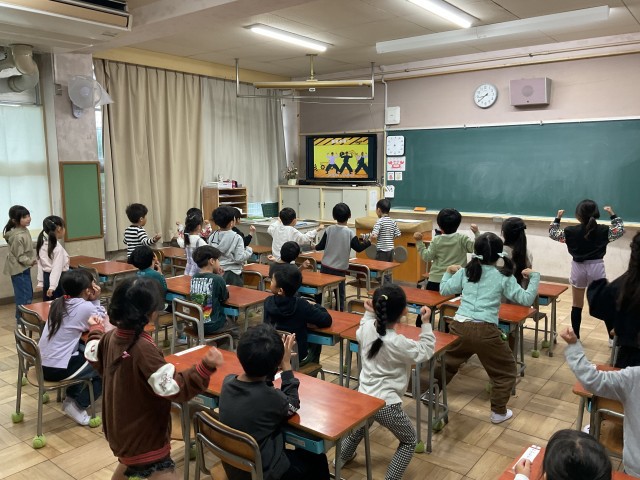 本校では、昨年度からいわゆる『小1ギャップ』を軽減する(新入生が小学校生活に円滑に慣れるようにする)ため、地域の幼稚園・保育園と連携して、架け橋プログラムを作成しています。今日は、その取組を視察するため、市と教育委員会の担当者3名が来校し、1年生の様子を見ていただきました。1年生のこの時期は『スタートカリキュラム』期間と位置付け、小学校の生活に慣れることを優先した遊びの要素を採り入れた授業を展開しています。今日は各クラスごとに算数や国語の学びをしつつ、児童の集中力が途切れないよう、体を動かしたり子ども同士で交流する時間を作っていました。