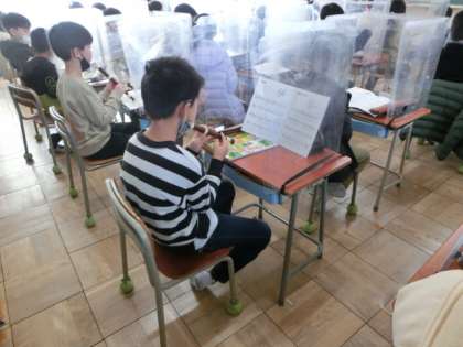 1月14日(金)3時間目、3年生のあるクラスでは、音楽の授業でした。冬休みに練習したリコーダーの曲をみんなで合奏しました。