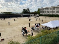 6年生が、今日は運動場で運動会の団体演技の練習をしていました。運動場から音楽が流...
