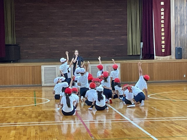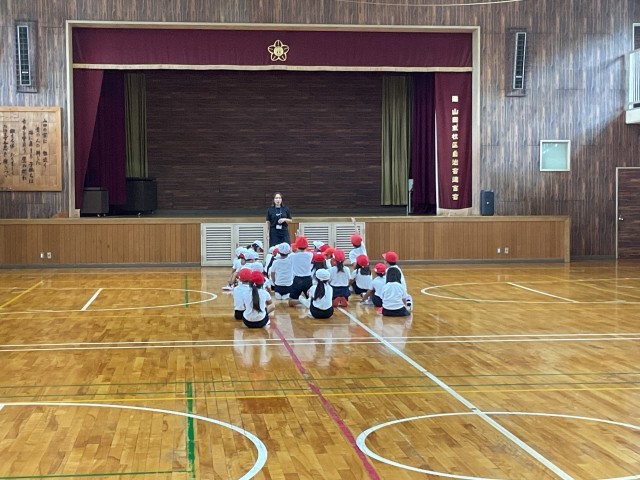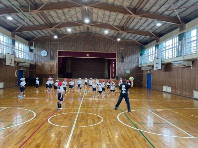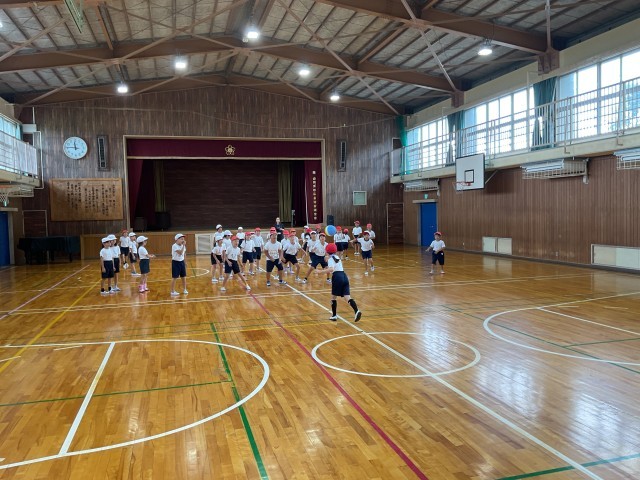 「簡単ドッチボール」いわゆる「中あて」をしました。先生からルールの説明をしっかり聞いて、わからないところはたくさん質問もしていました。外野から投げられたボールを中の人が上手にキャッチするので、なかなか当たる人が出ず、途中からボールが2つになりました。先生も中から参戦で、逃げたり、キャッチしたり一生懸命取り組みました。