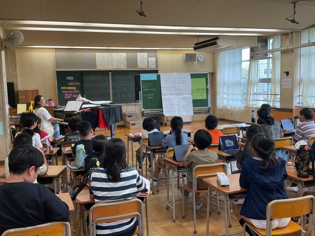 1曲目の「世界を旅する音楽室」は1学期から練習を始めているみんな大好きな曲で、今はノリノリで歌っています。