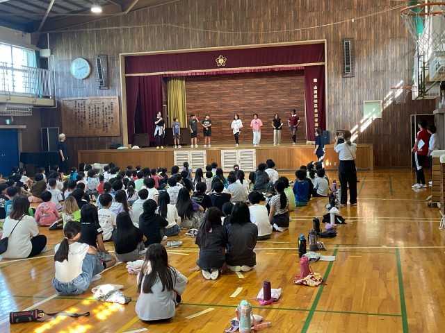 次は鑑賞と言いながら、観客も一緒に出演する場面があるようで、「えのき」「まいたけ」「しめじ」の動きや、きのこウェーブの練習をしました。みんな上手になりきっていたので、当日、楽しみですね。
