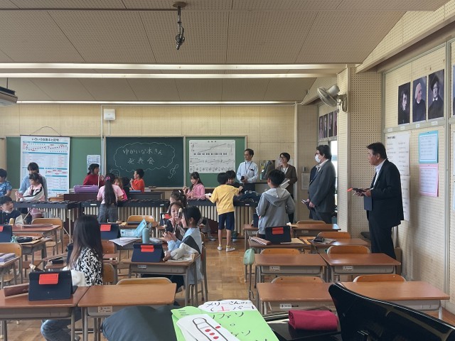 今日、2限目に枚方市教育委員会から指導主事、教育委員が来校され、全クラスの授業を参観されました。日頃から取り組んでいることや授業の様子を見ていただき、子どもたちが生き生きと取り組んでいる姿にお褒めの言葉をいただきました。