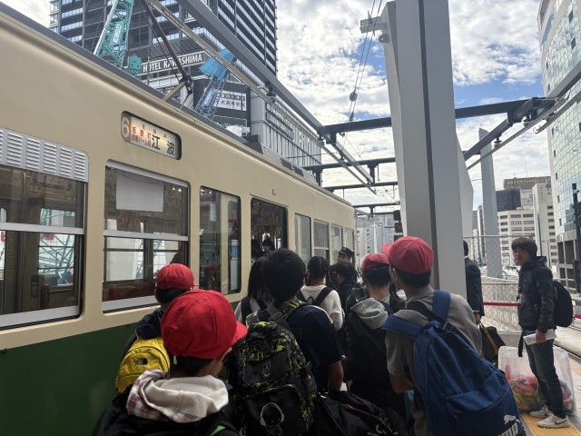 数年前から工事をしていましたが、ついに完成していて、新幹線の出口から出てすぐに広田の乗り場につながっていて、とても便利になりました。色々なタイプがあるのですが、超レアなかなり古いタイプに乗りました。