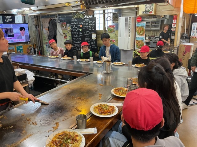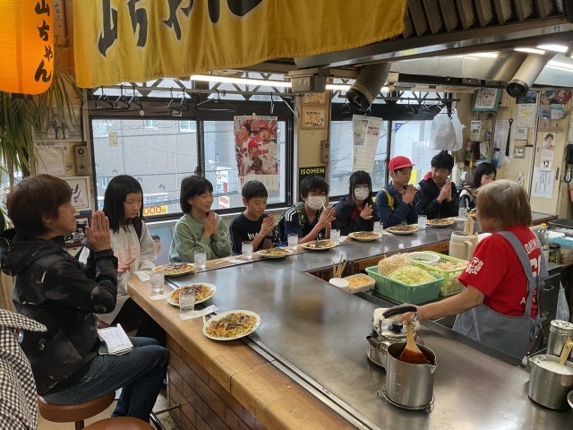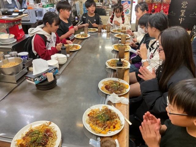 「八丁堀」で降りて「お好み村」へ。3つのお店に分かれて、「いただきまーす」