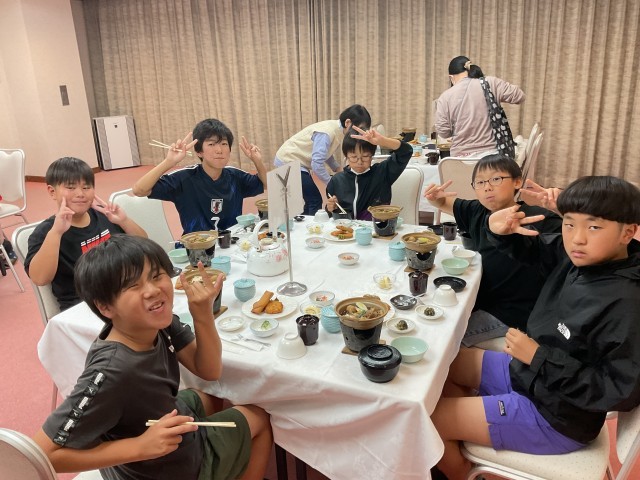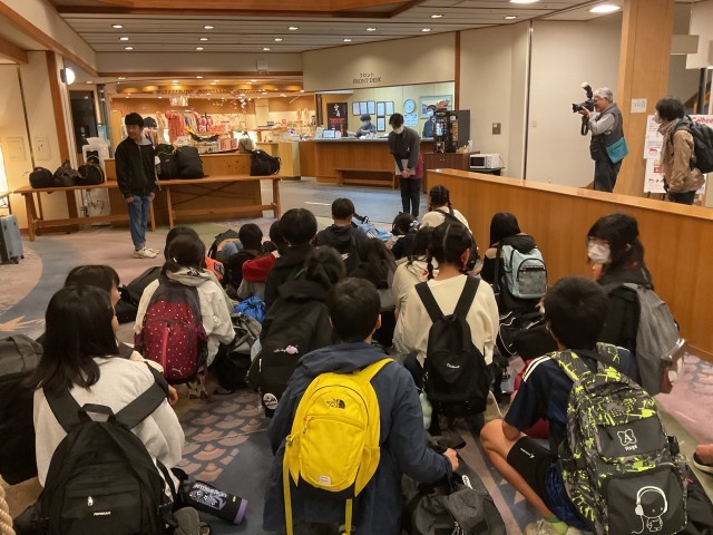 お世話になります。とあいさつをした後、部屋に戻って、すぐに夕食会場に集合です。