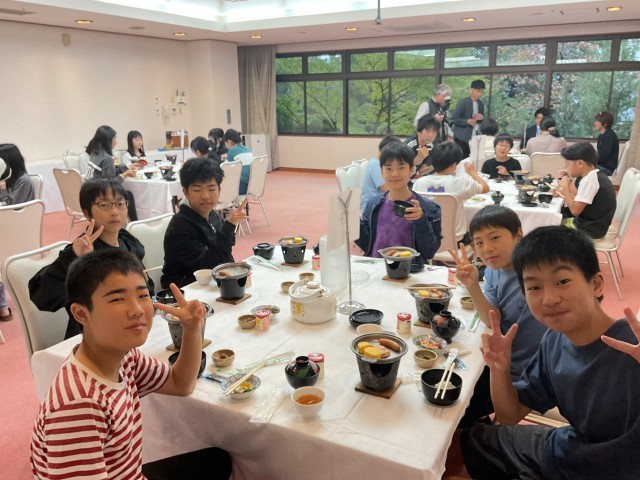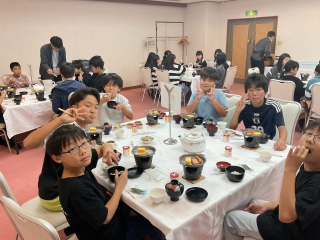 2日目の朝を迎えました。係の人の「昨日の夜はよく眠れましたか?」の問いかけに、みんな「はーい」と答えていましたが、体調が悪い人もいなくて、みんな元気そうです。