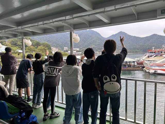 楽しい時間も終わり、昨日とは違う船に乗って宮島にさよならです。今から帰路につきます。