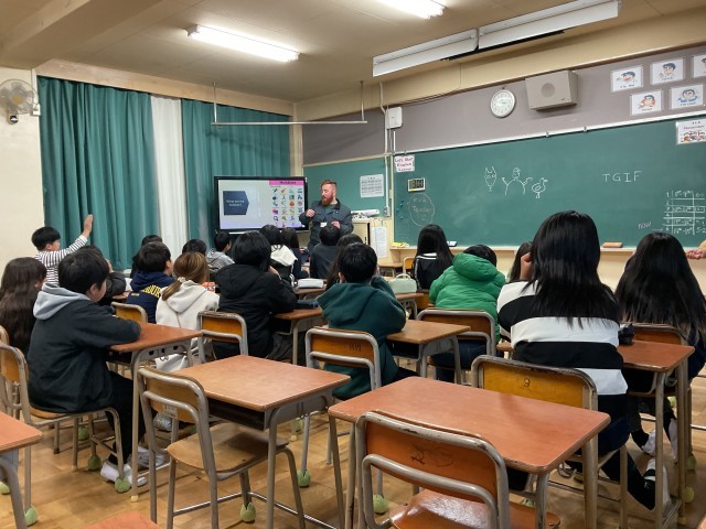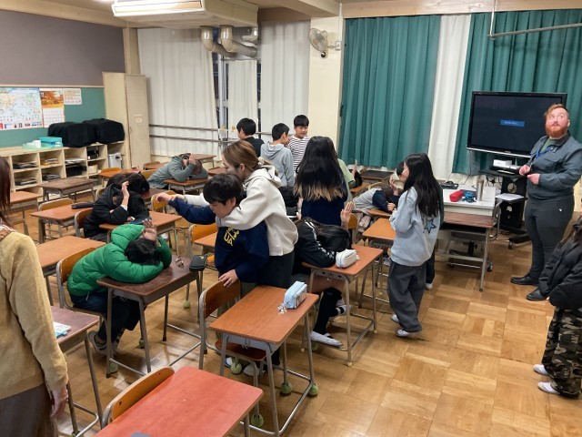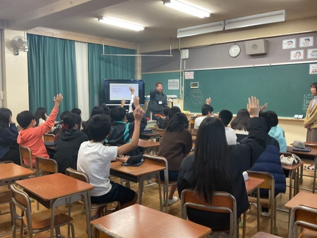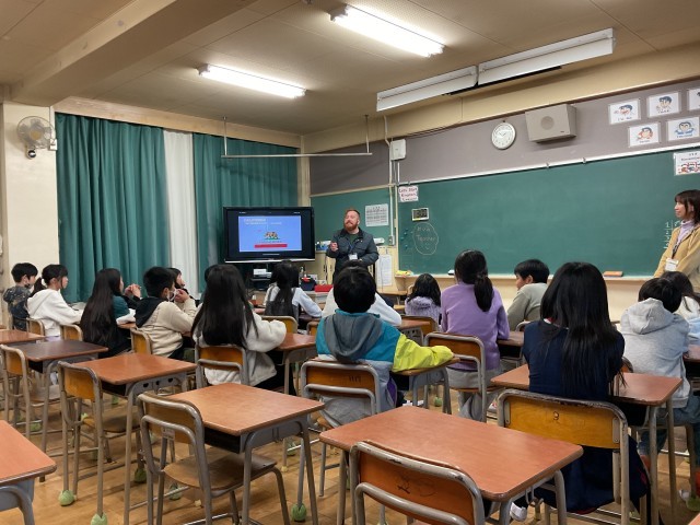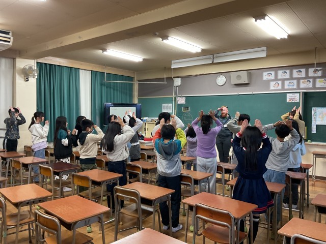 今日は山田中学校のNET、ムラリ先生が来てくださり、5年生、6年生の英語の授業を一緒にやっていただきました。自分の好きなものを英語で言いながらゲームをしたり、ムラリ先生の自己紹介をクイズ形式で行いました。ムラリ先生の出身地の説明を聞きながら、新しい英単語を覚えていきました。また、“Who chose you?” 〇〇 chose me.”と誰が自分を選んだか当てるゲームでは、目をつぶっていても自分を選んだ人を言い当てる人もいました。