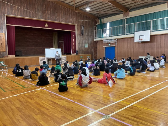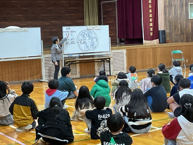 3〜4時間目に5・6年生が人権教育講演会を受けました。体の成長や思春期について思春期保健相談士である徳永先生の話を聞きました。成長していく中で脳がどのような指示を出すのか、また人形を使って男女の体に違いについてお話をいただきました。子どもたちは自分たちの体のこともあり、真剣に話を聞きました。本の紹介では、興味のある本をじっと読む姿も見られました。