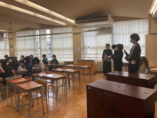 枚方市教育委員会から本校の授業を観にこられ、2限目に全クラスの授業を観ていただきました。